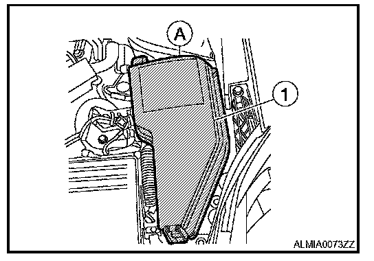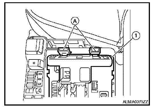 2. Remove the IPDM E/R cover (1) while pressing the pawl (A) at the rear end of the IPDM E/R cover (1).