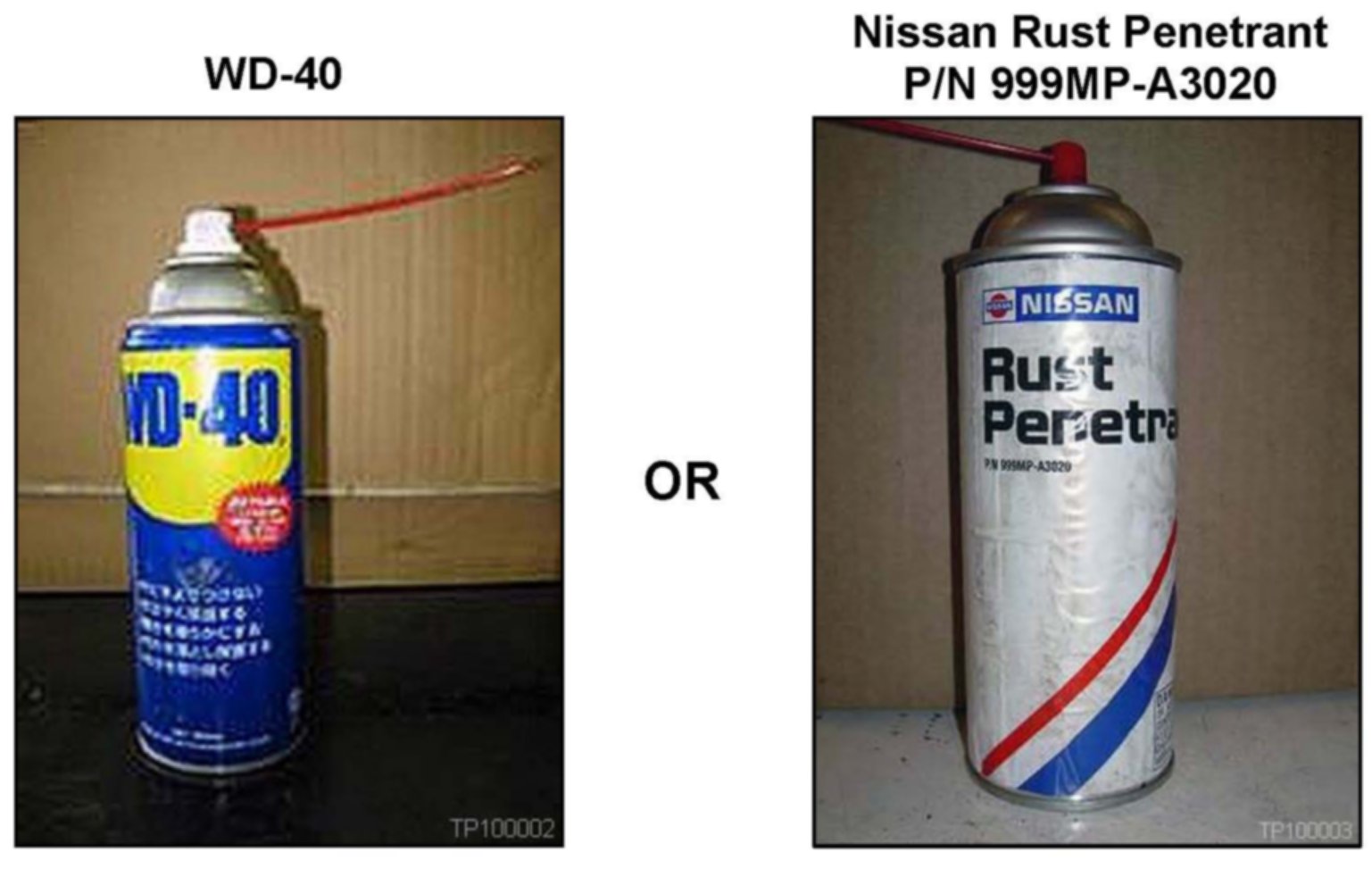 ^ Nissan Rust Penetrant can be ordered through the Nissan Direct Ship Chemical Care Product Program, Website order via link on dealer portal.