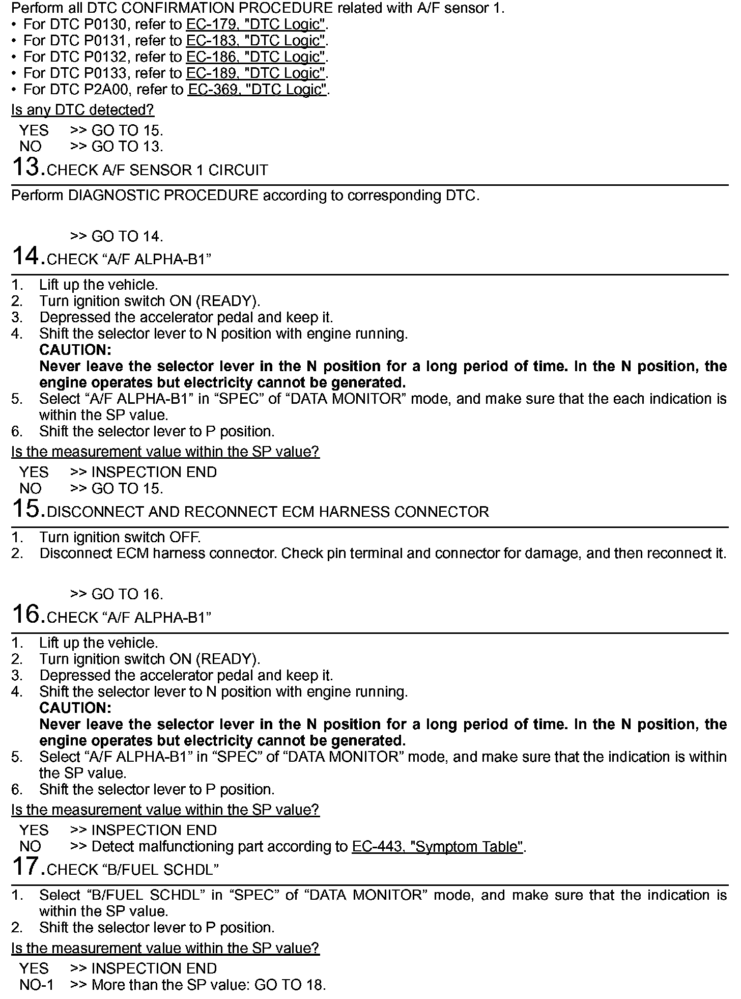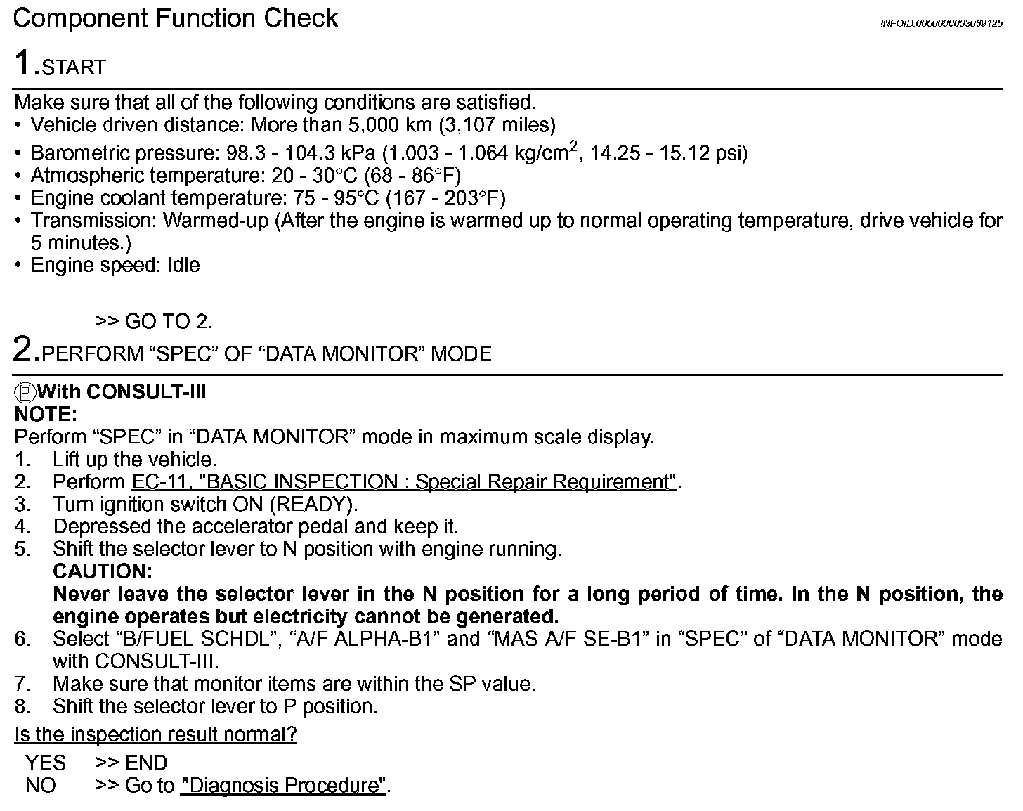 COMPONENT DIAGNOSISTROUBLE DIAGNOSIS - SPECIFICATION VALUE