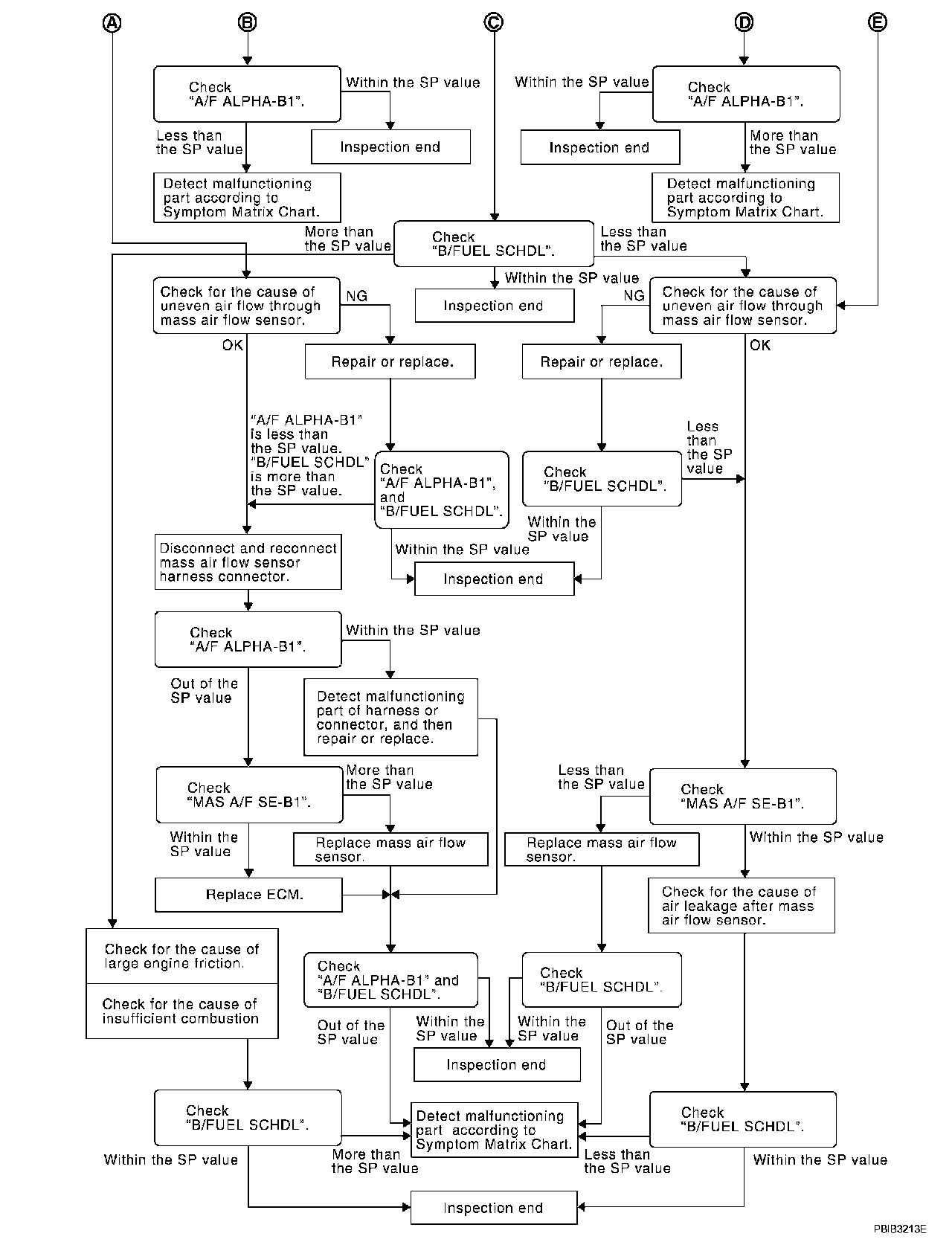 - MAS A/F SE-B1 (The signal voltage of the mass air flow sensor)