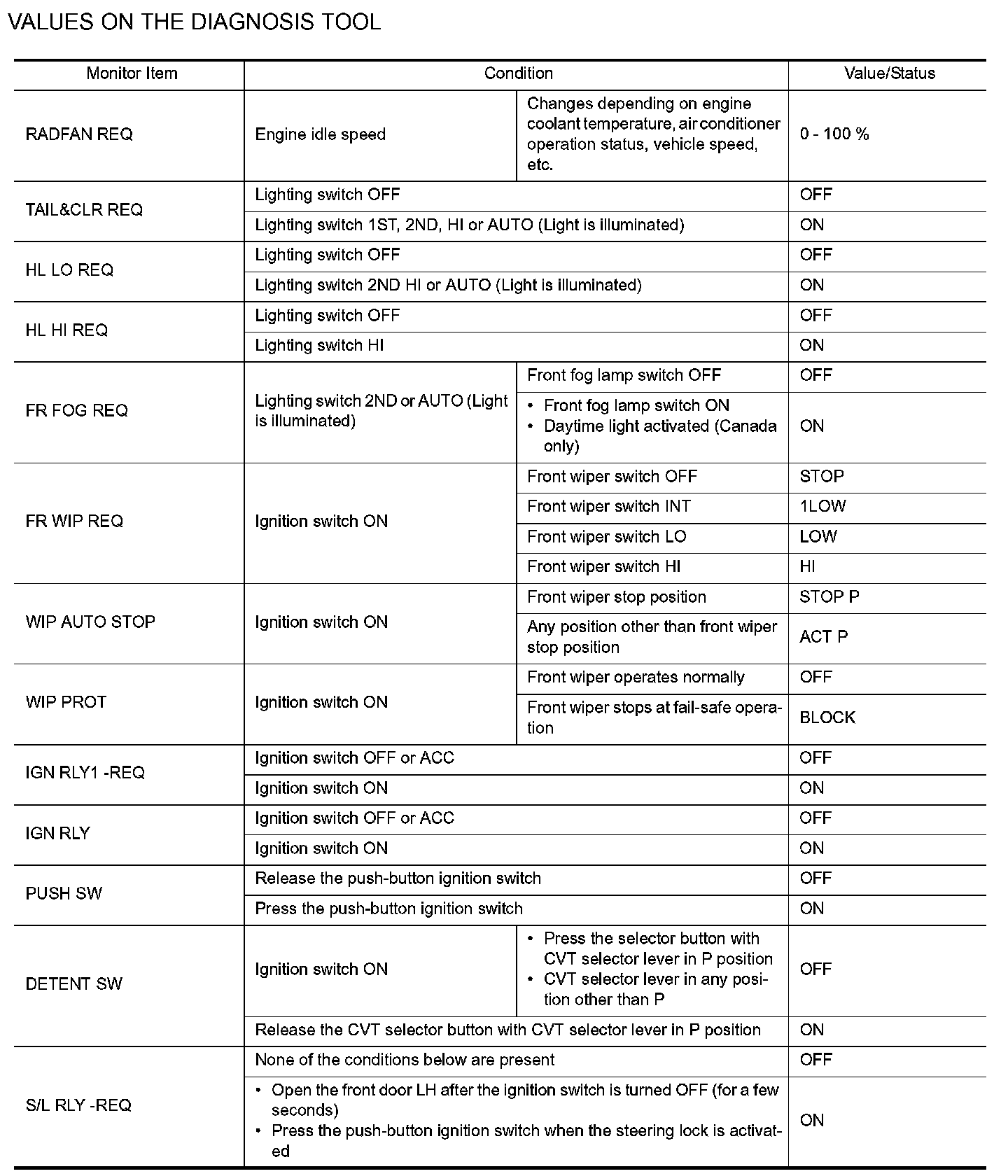 VALUES ON THE DIAGNOSIS TOOL