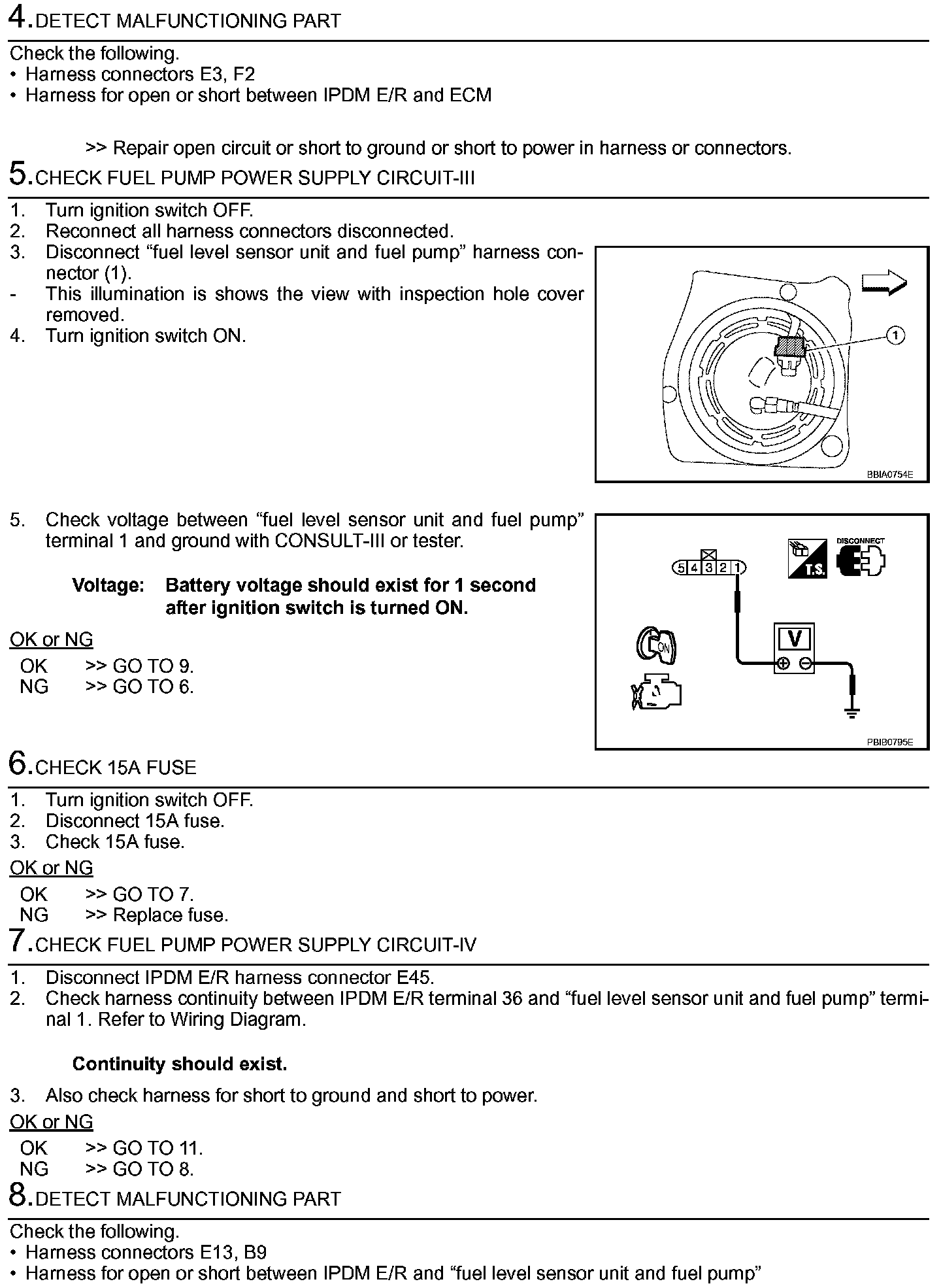 3. If NG, replace "fuel level sensor unit and fuel pump".