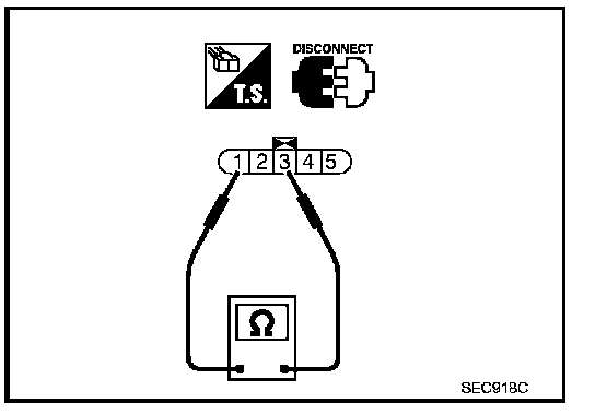 2. Check resistance between "fuel level sensor unit and fuel pump" terminals 1 and 3.