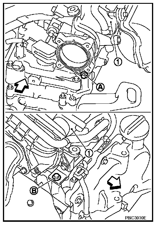 bolt (A). Then tighten intake manifold bolt (B).