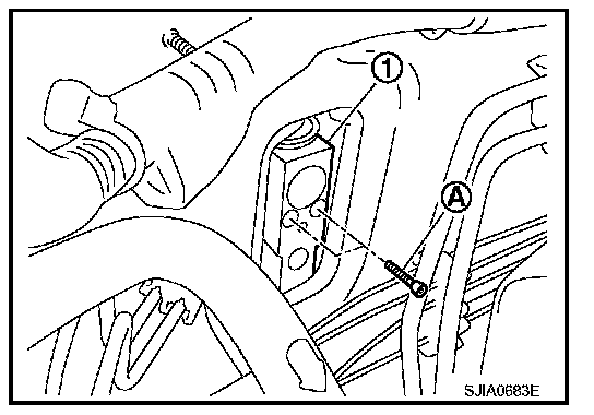 4. Remove the expansion valve bolts (A) and then remove the expansion valve (1).