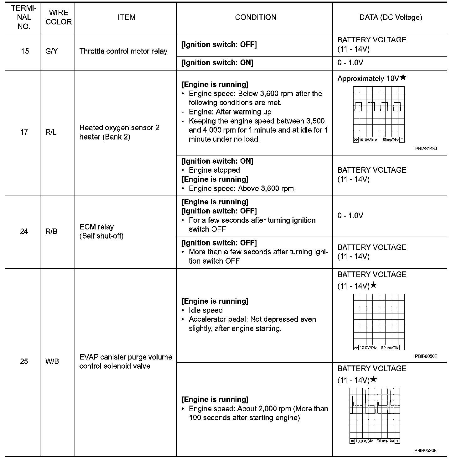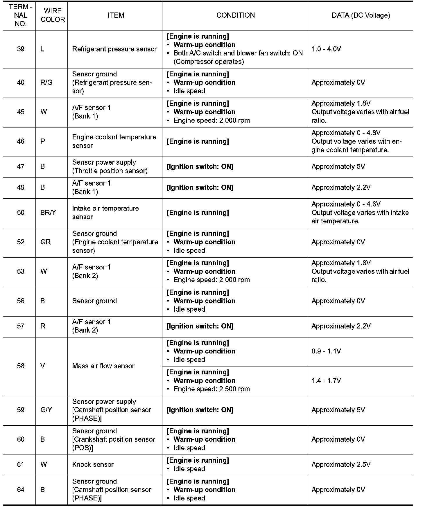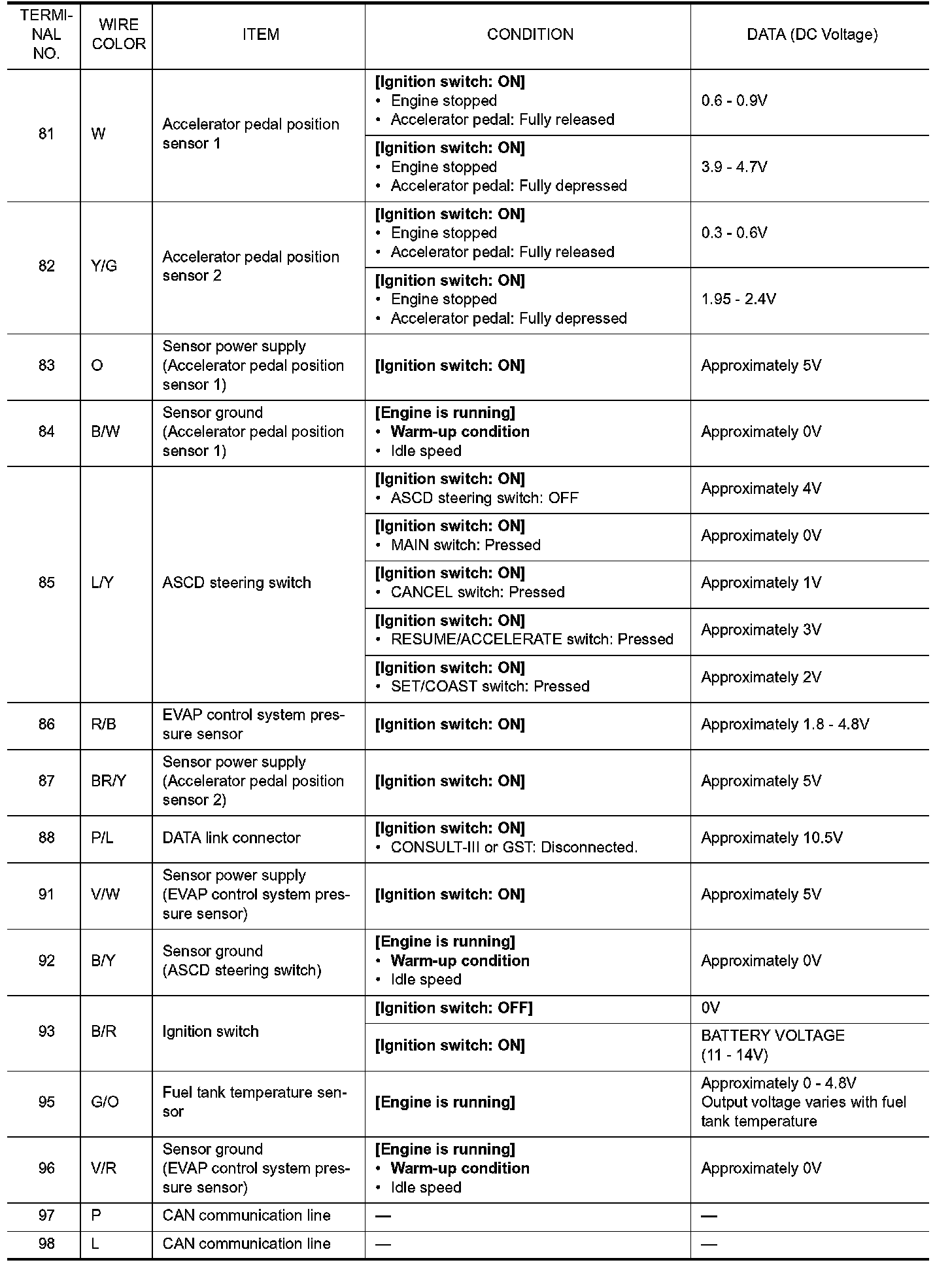 ECM Harness Connector Terminal LayoutECM Terminal and Reference Value