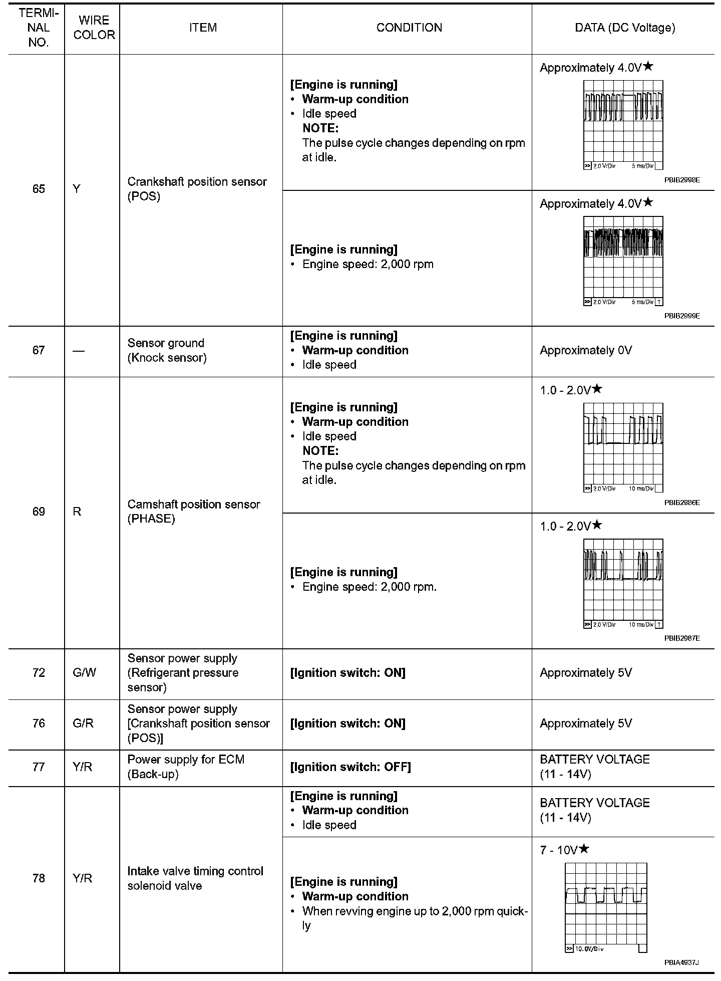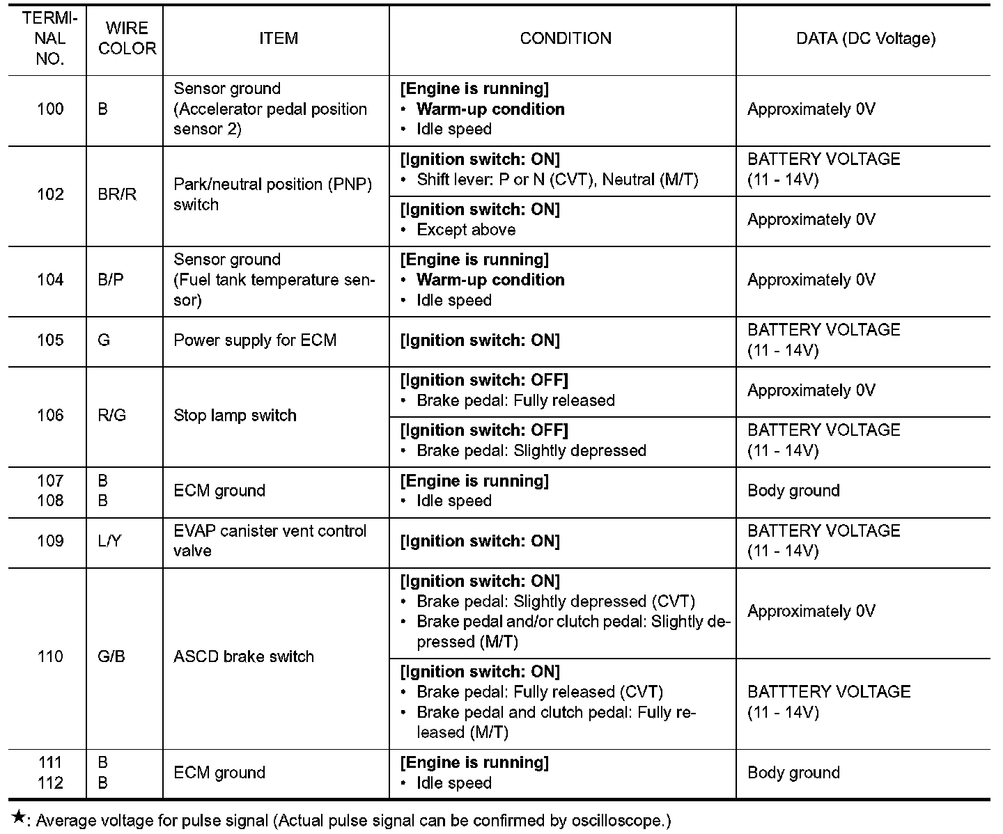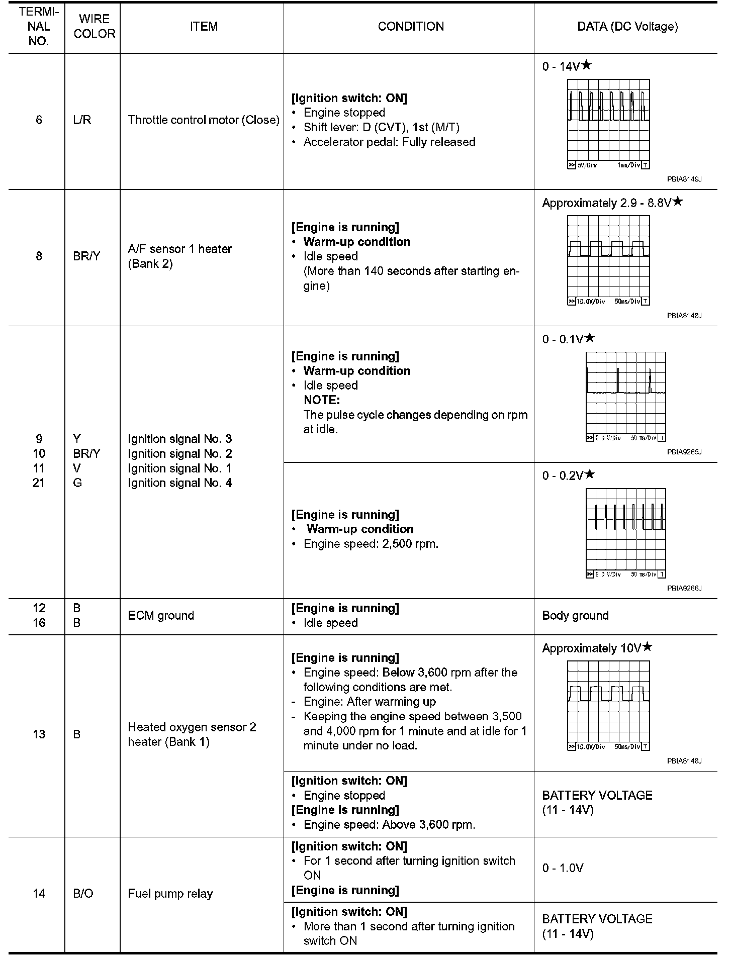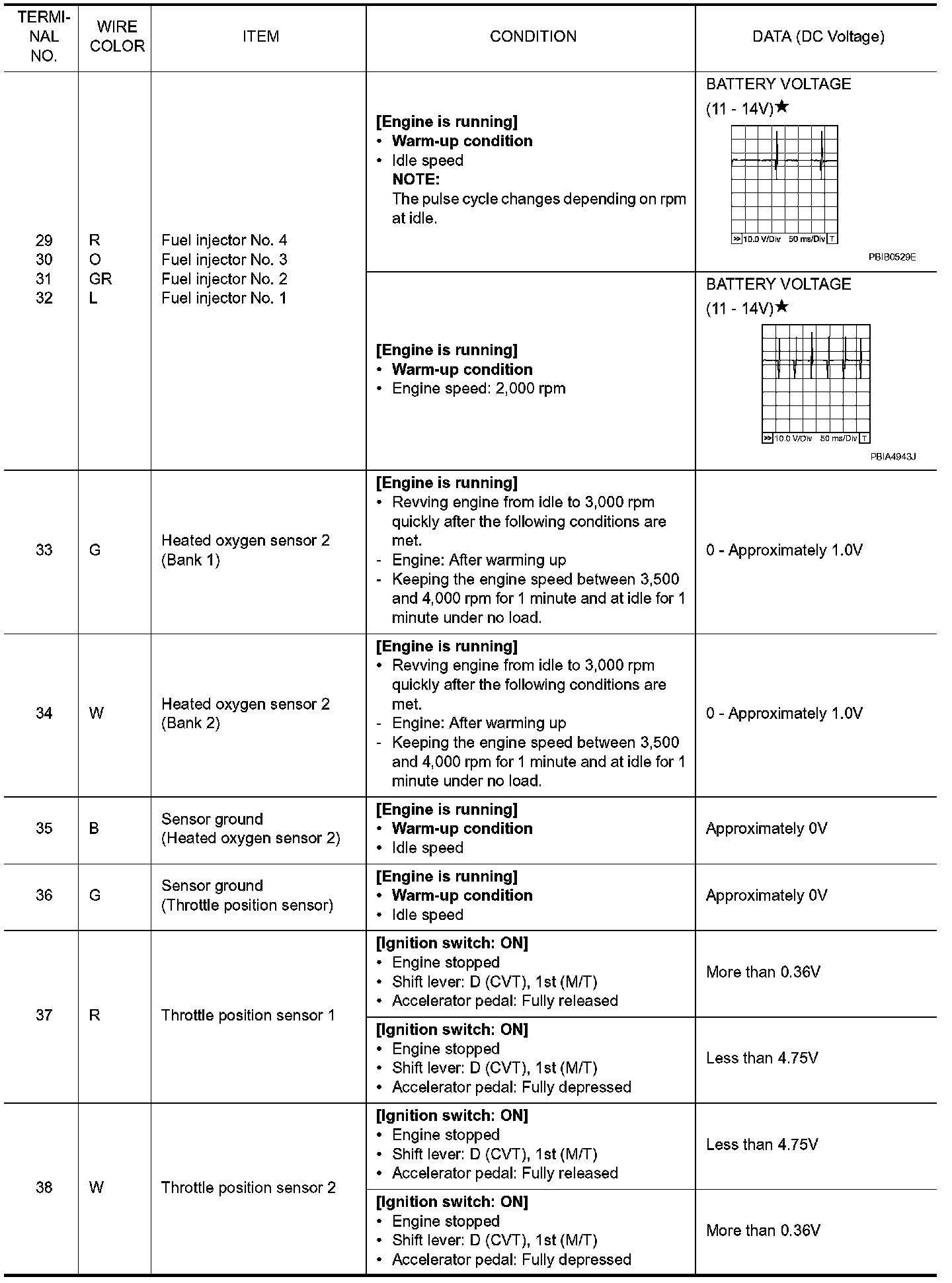 ECM Harness Connector Terminal LayoutECM Terminal and Reference Value