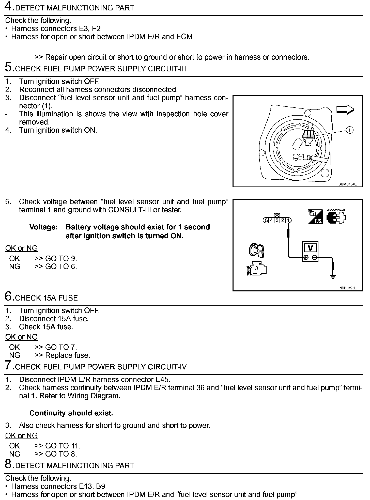 3. If NG, replace "fuel level sensor unit and fuel pump".