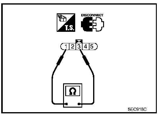 2. Check resistance between "fuel level sensor unit and fuel pump" terminals 1 and 3.