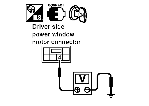 2. Check voltage between driver side power window motor connector D9 terminal 4 and ground.