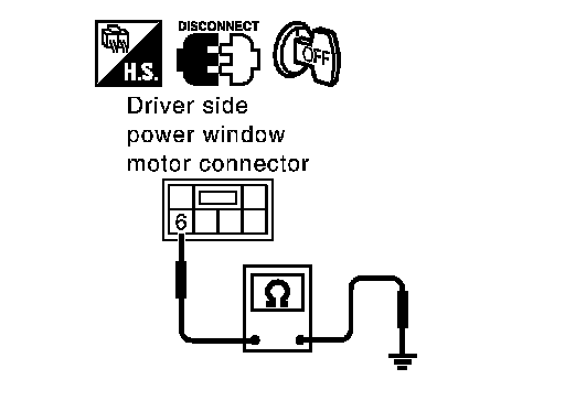 3. Check continuity between driver side power window motor connector D9 terminal 6 and ground.
