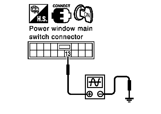 3. Check signal between power window main switch connector and ground with oscilloscope.