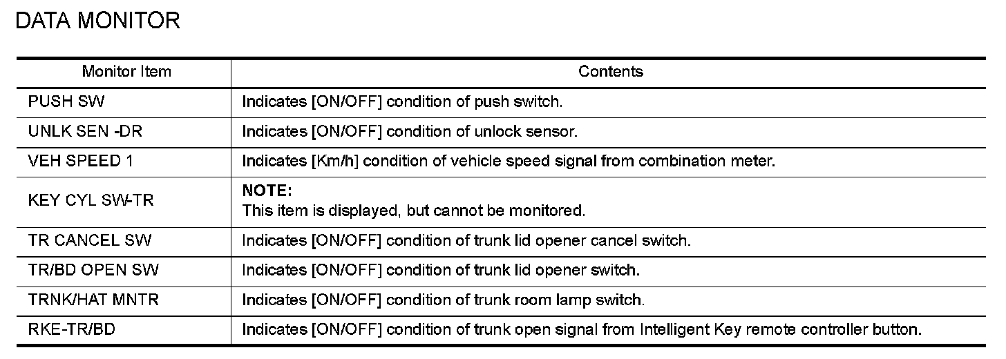TRUNK : CONSULT-III Function (BCM - TRUNK)