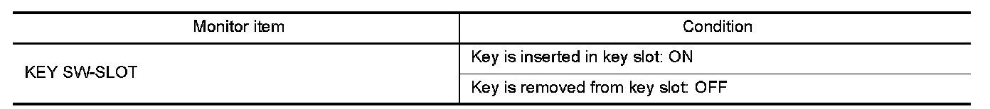 Check KEY SW -SLOT in "DATA MONITOR" mode with CONSULT-III.