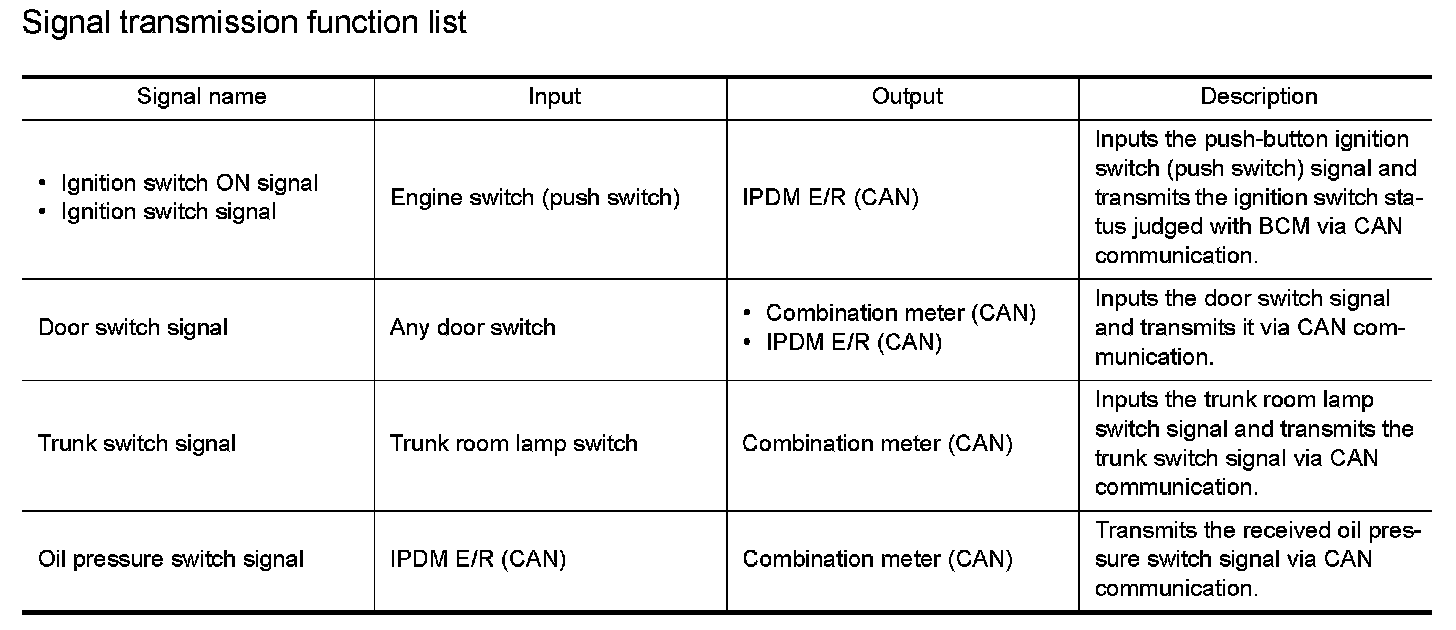 Signal transmission function list