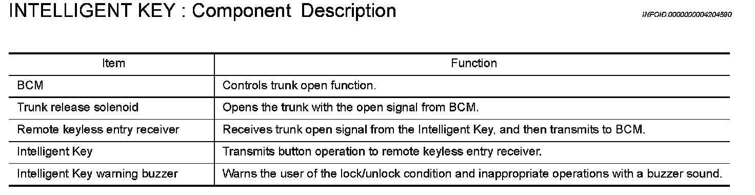 INTELLIGENT KEY : Component Description
