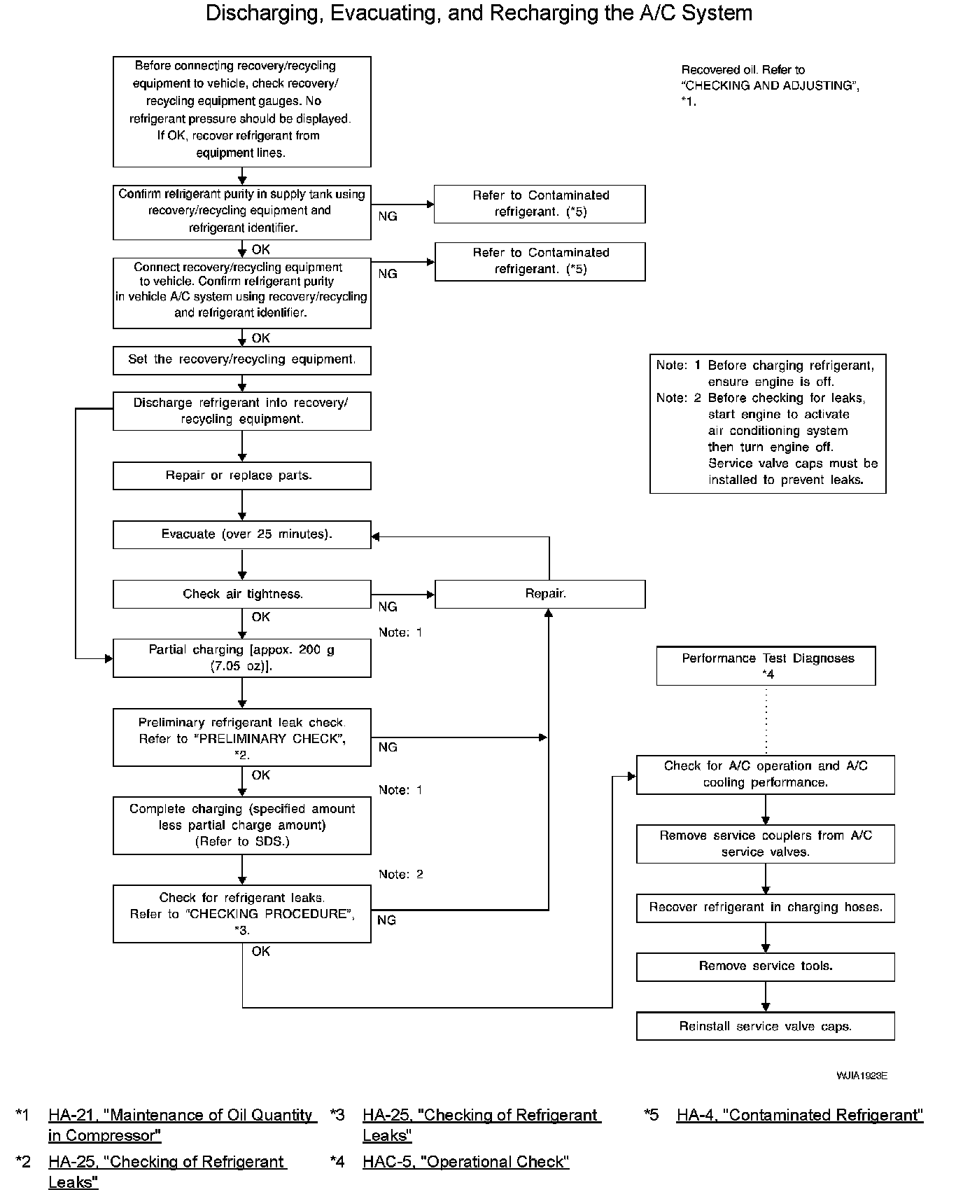 Remove the HFC-134a (R-134a) from the A/C system using certified service equipment meeting the requirements of SAE J2210 (R-134a recycling equipment) or SAE J2201 (R-134a recovery equipment).
