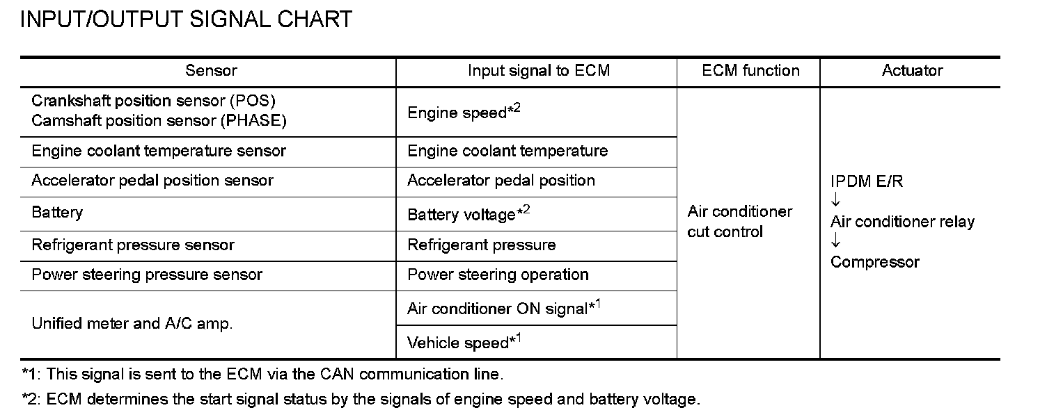 INPUT/OUTPUT SIGNAL CHART