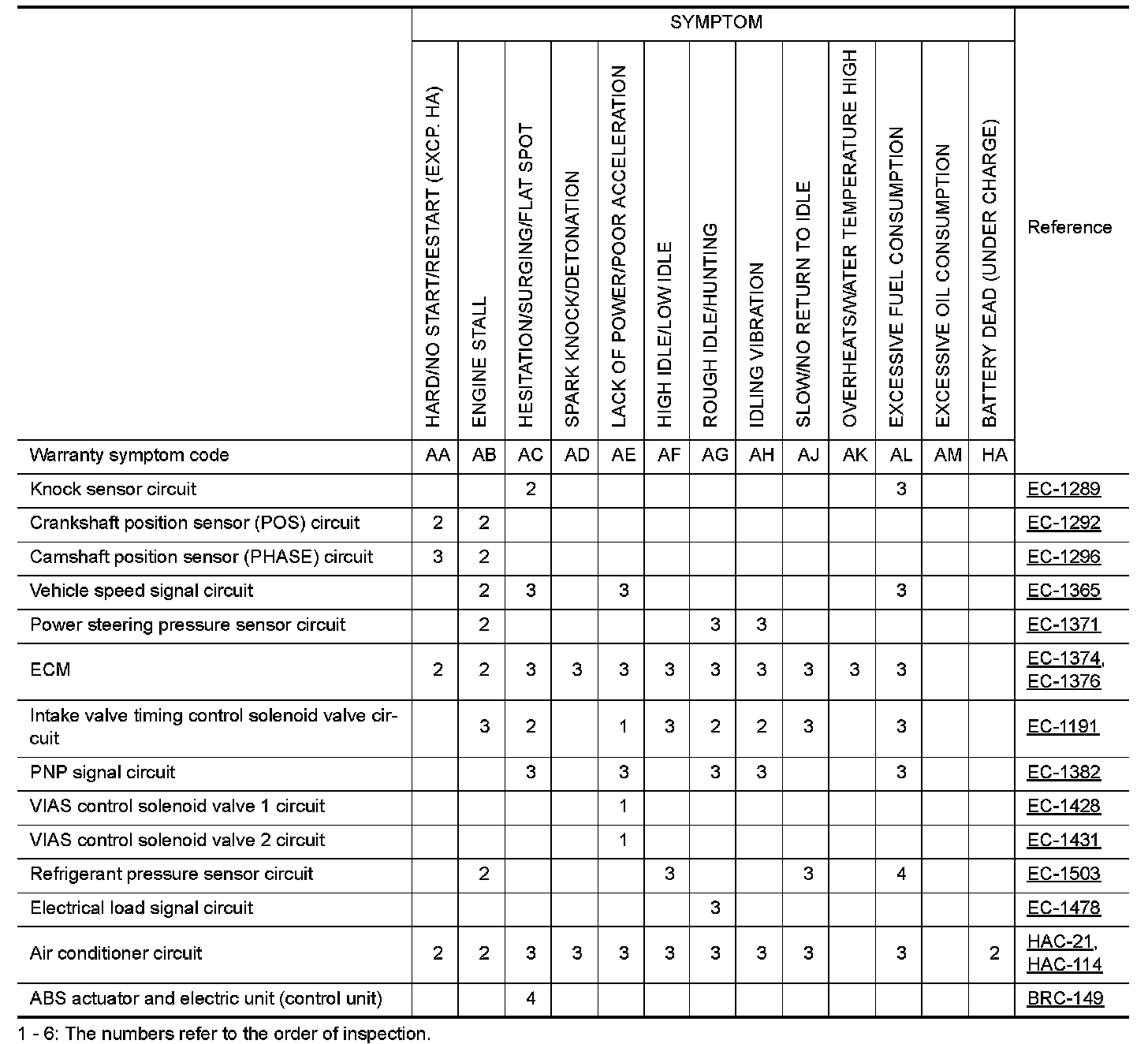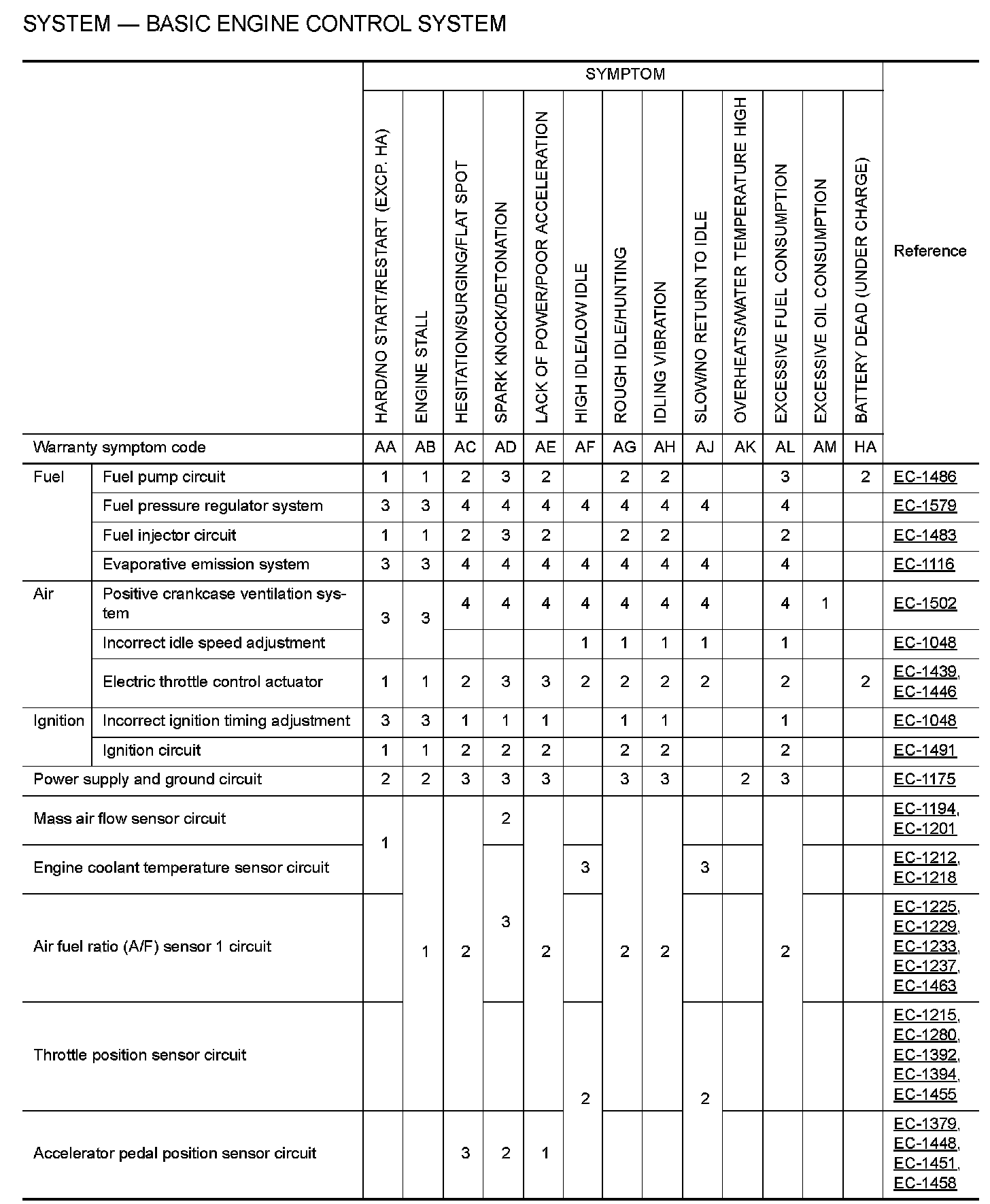 ENGINE CONTROL SYSTEM SYMPTOMS