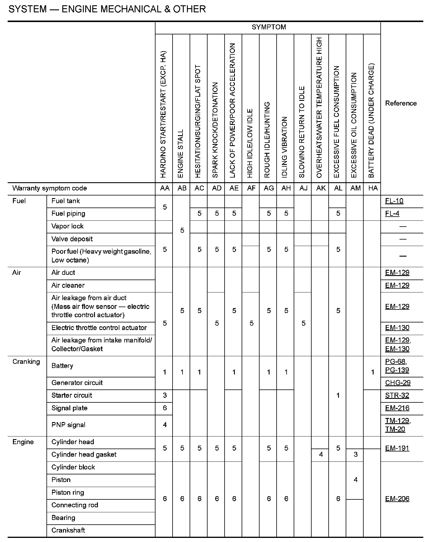 SYSTEM -- ENGINE MECHANICAL and OTHER