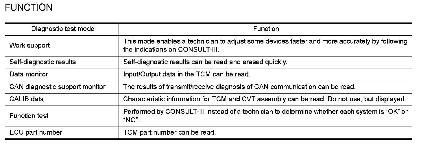 CONSULT-III can display each diagnostic item using the diagnostic test modes shown below.