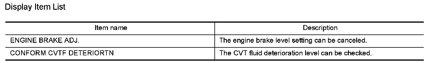 Touch "CLEAR" after changing CVT fluid, and then erase "CVTF DETERIORATION DATE".