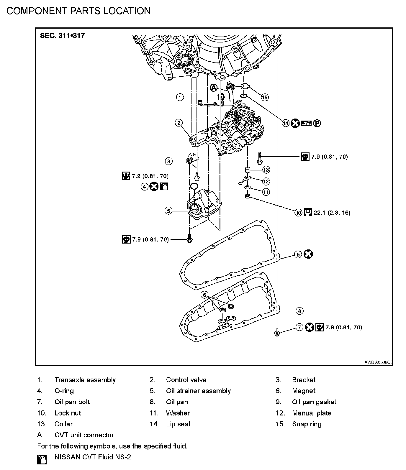Tighten the oil pan bolts again clockwise from (1) shown the specified torque.