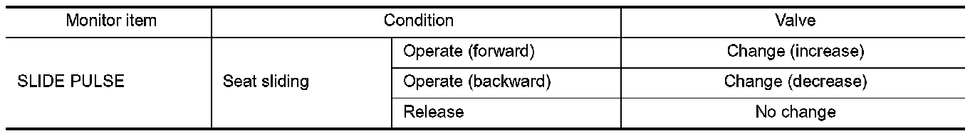 2. Check sliding sensor signal under the following conditions.