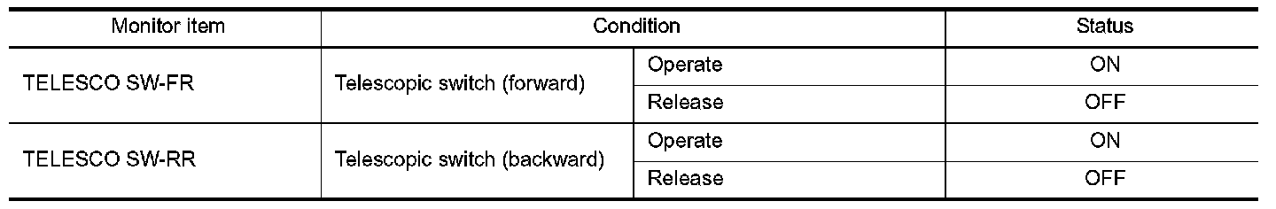 2. Check telescopic switch signal under the following conditions.