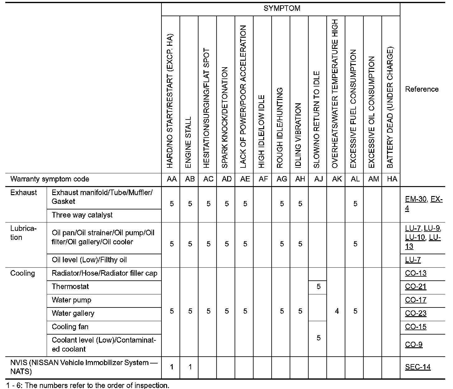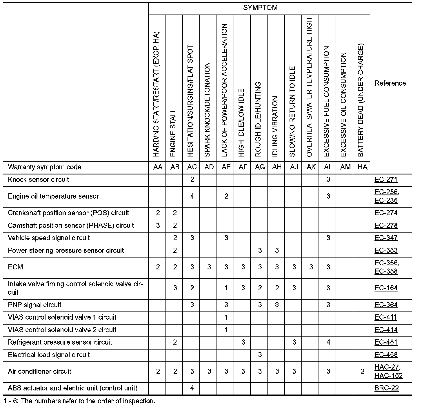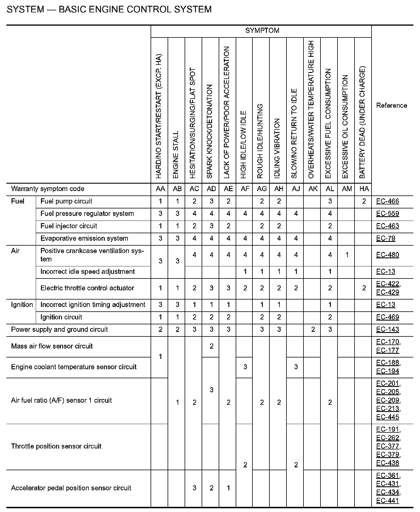ENGINE CONTROL SYSTEM SYMPTOMS