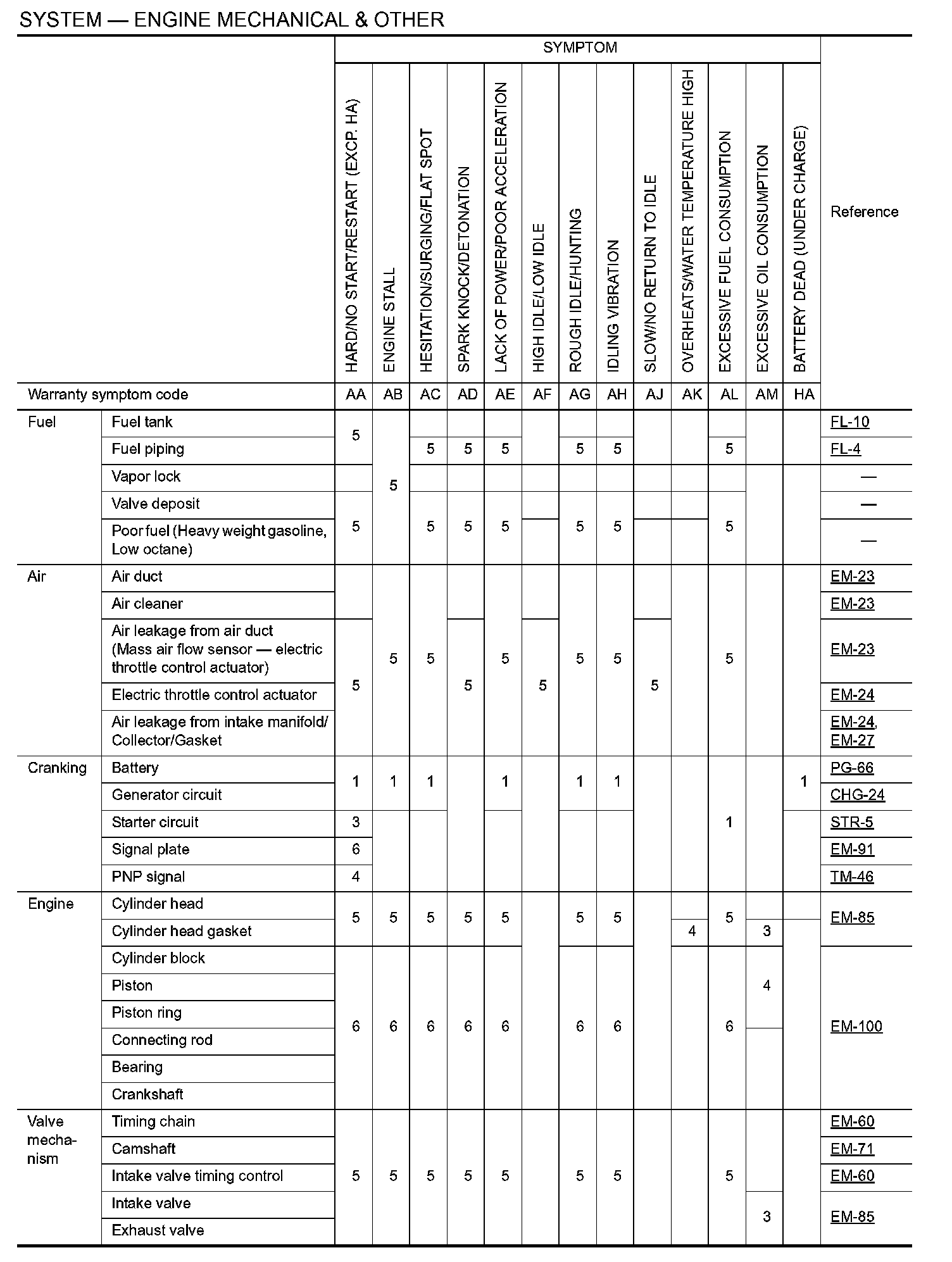 SYSTEM -- ENGINE MECHANICAL and OTHER