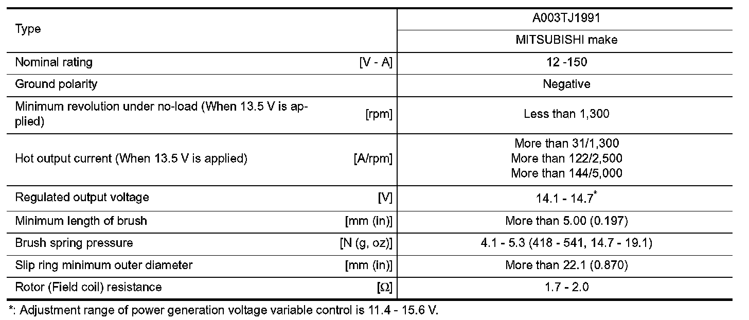 Charging System: Specifications