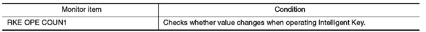 Check remote keyless entry receiver RKE OPE COUN1 in "DATA MONITOR" mode with CONSULT-III.