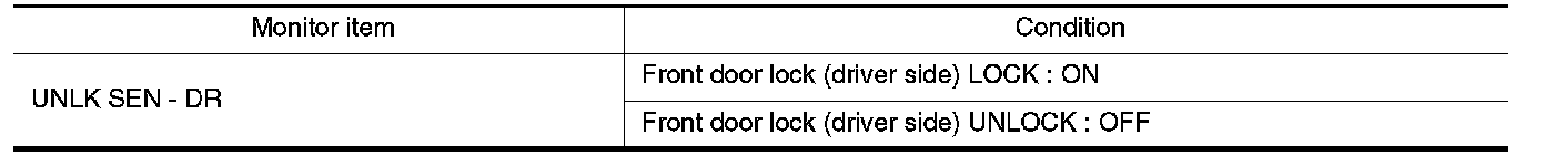 Check unlock sensor UNLK SEN - DR in "DATA MONITOR" mode.