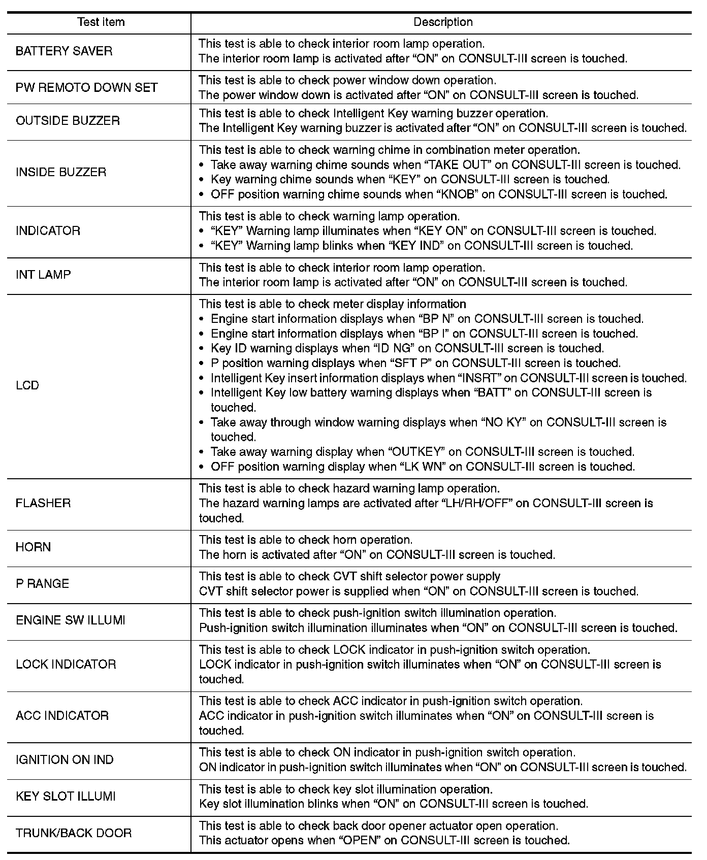 CONSULT-III Function (BCM - Intelligent Key)