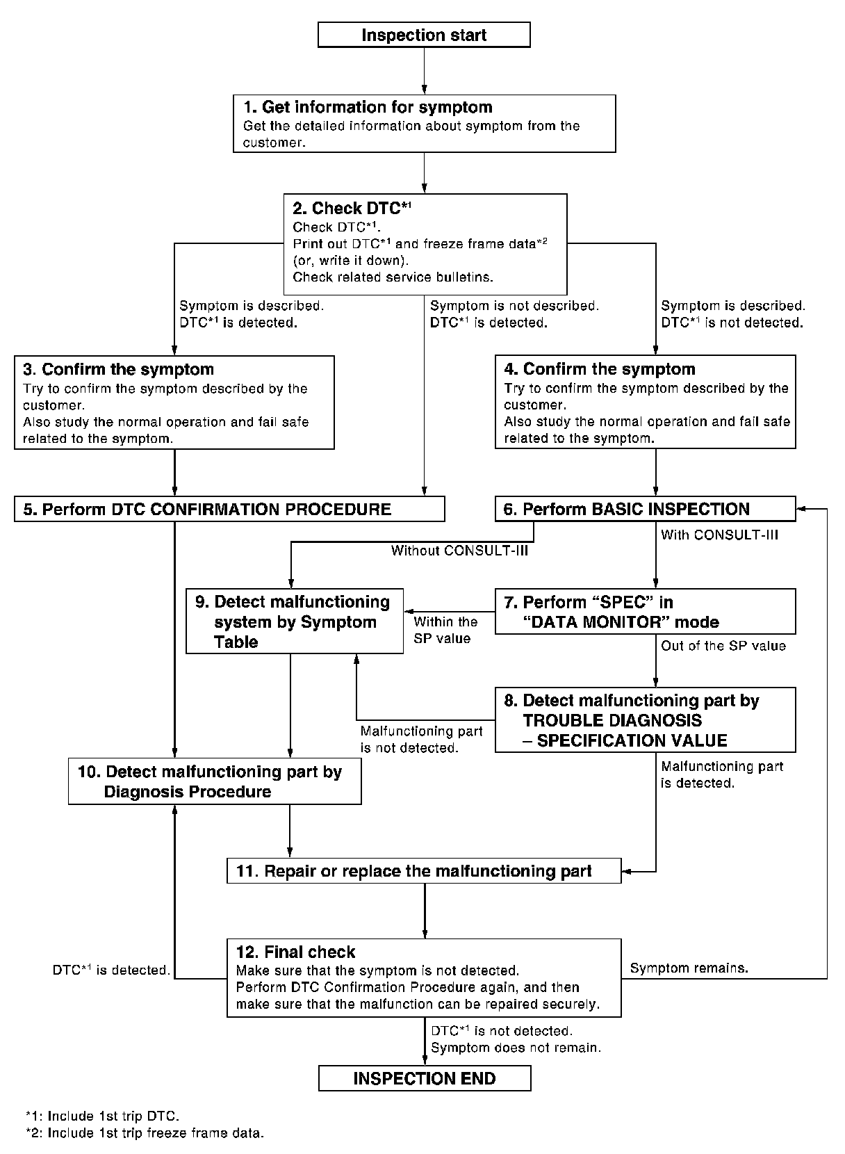 - Study the relationship between the cause detected by DTC and the symptom described by the customer.