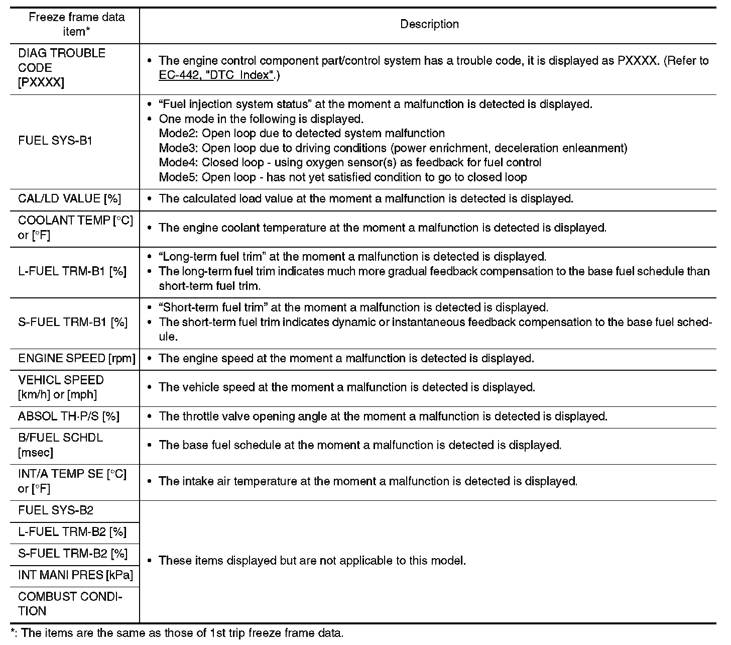 Freeze Frame Data and 1st Trip Freeze Frame Data