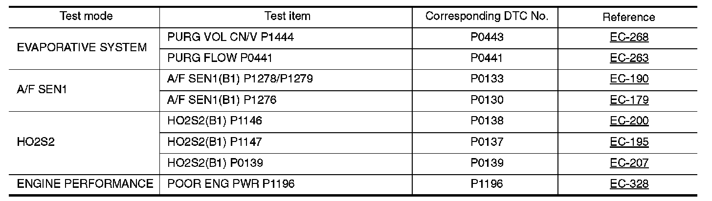 Regarding items of DTC and 1st trip DTC, Testing and Inspection.)