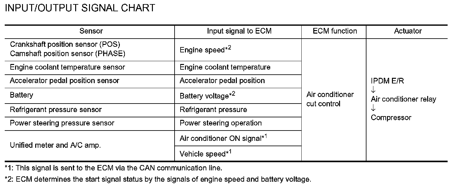 INPUT/OUTPUT SIGNAL CHART