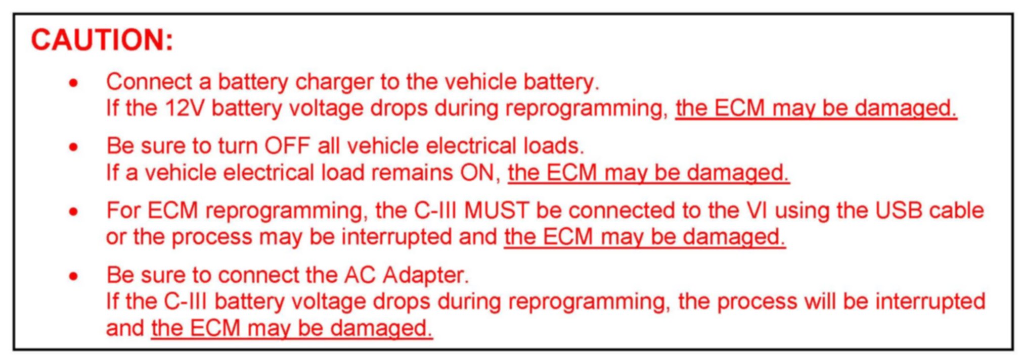 1. Connect C-III to the vehicle to begin the reprogramming procedure.