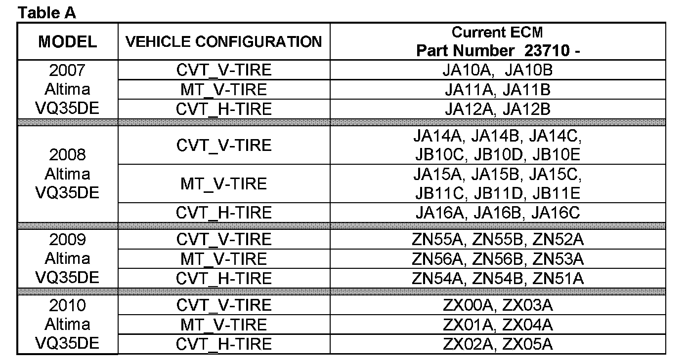 B. Compare the Part Number you wrote down to the numbers in the Current ECM Part Number column in Table A.