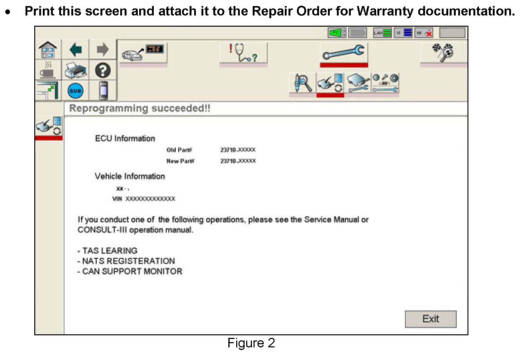 3. If this bulletin applies and you have performed ECM reprogramming, the screen in Figure 2 appears when reprogramming is complete.