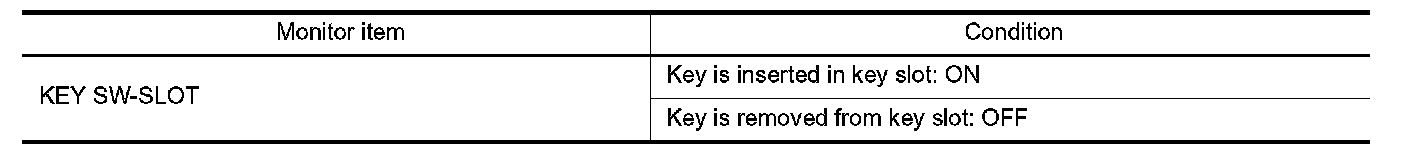 Check KEY SW -SLOT in Data Monitor mode with CONSULT-III.