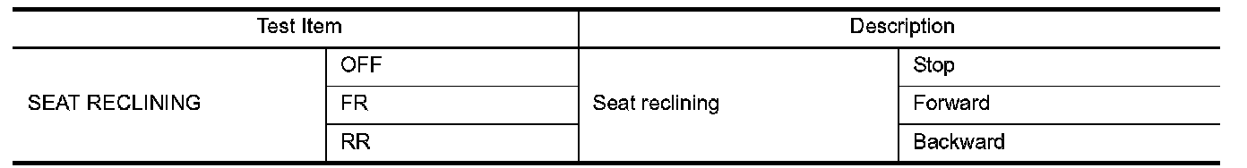 1. Select "SEAT RECLINING" in "Active test" mode with CONSULT-III.