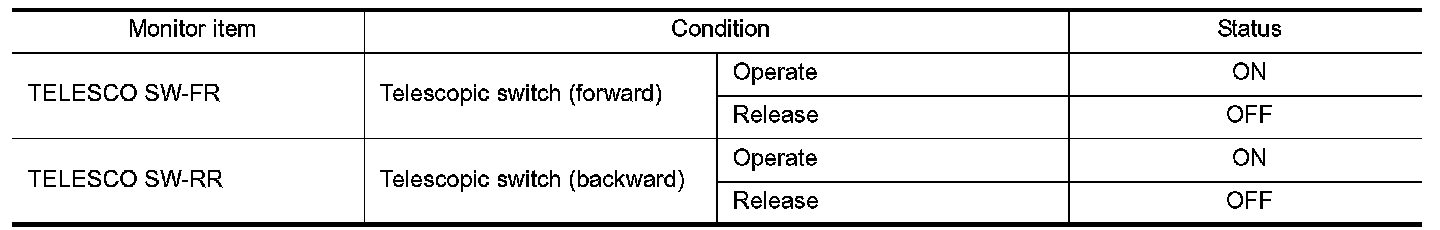 2. Check telescopic switch signal under the following conditions.