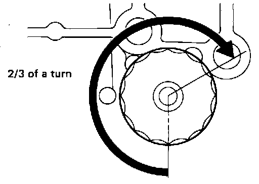 3. Screw the oil filter manually until it touches the installation surface, then tighten it by turning another 2/3 turn, or tighten to specification using Tool.