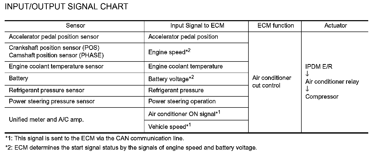 INPUT/OUTPUT SIGNAL CHART