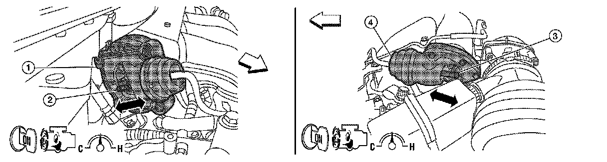 3. Turn VIAS control solenoid valve 1 "ON" and "OFF", and check that power valve actuator 1 rod moves.