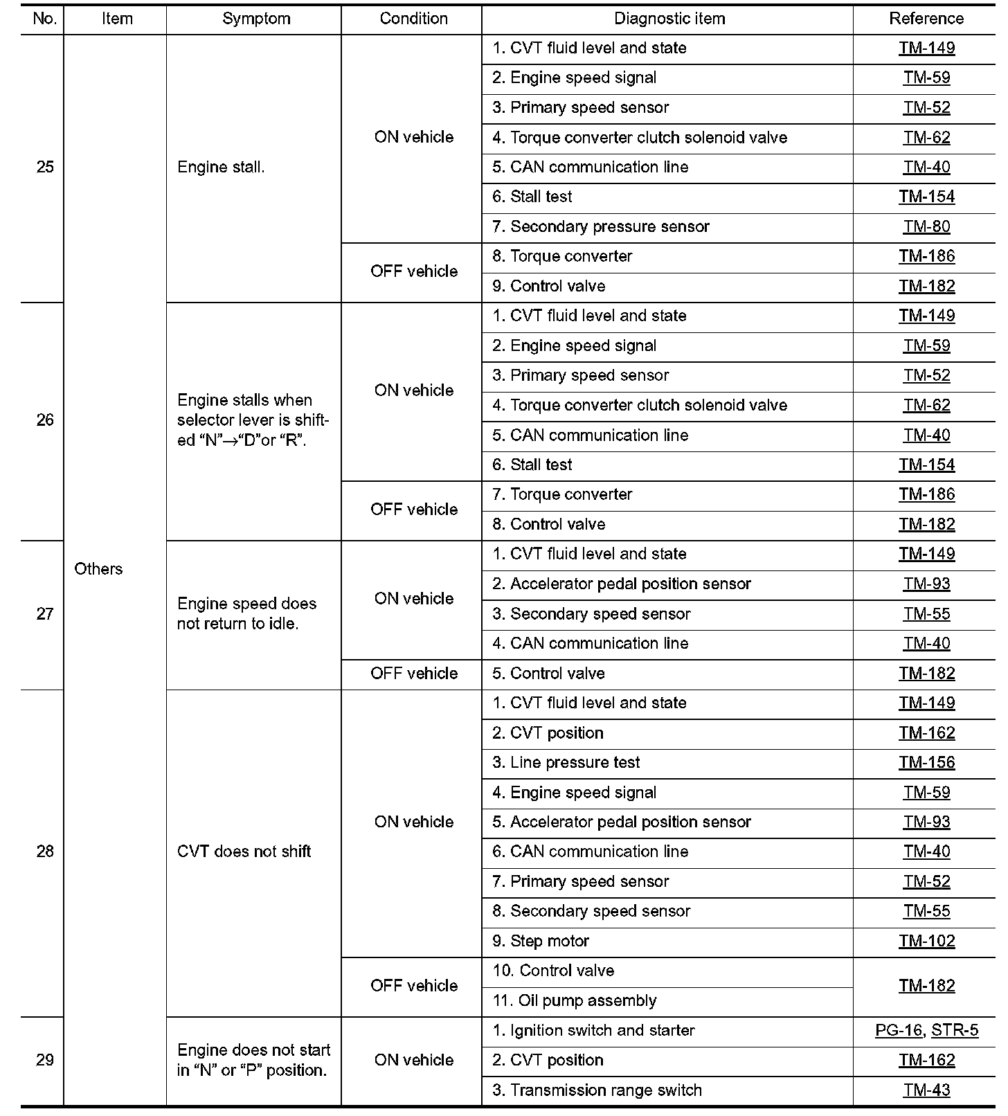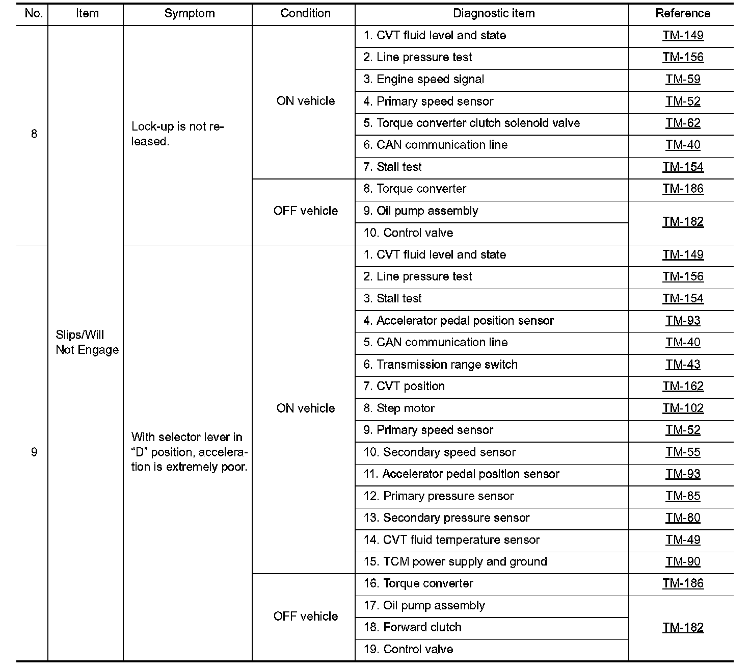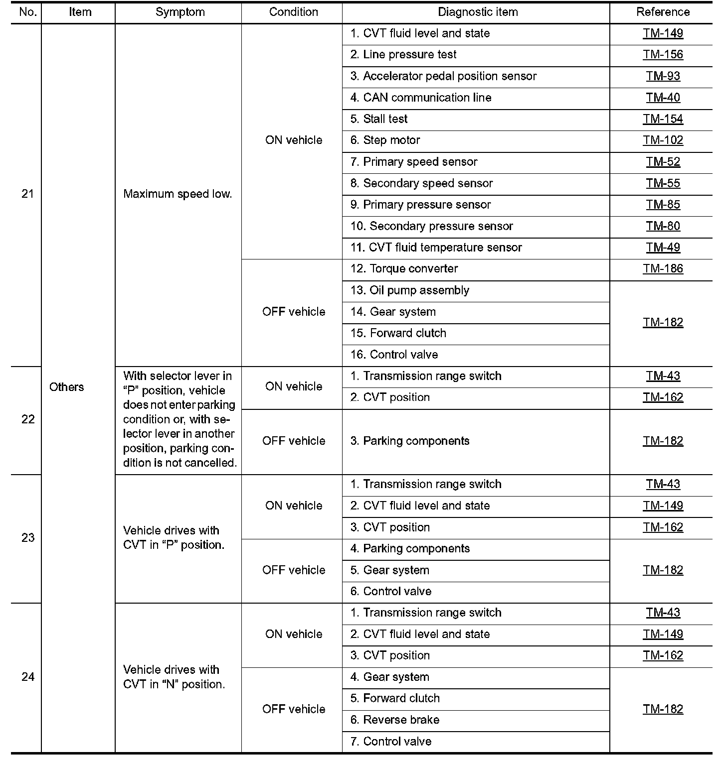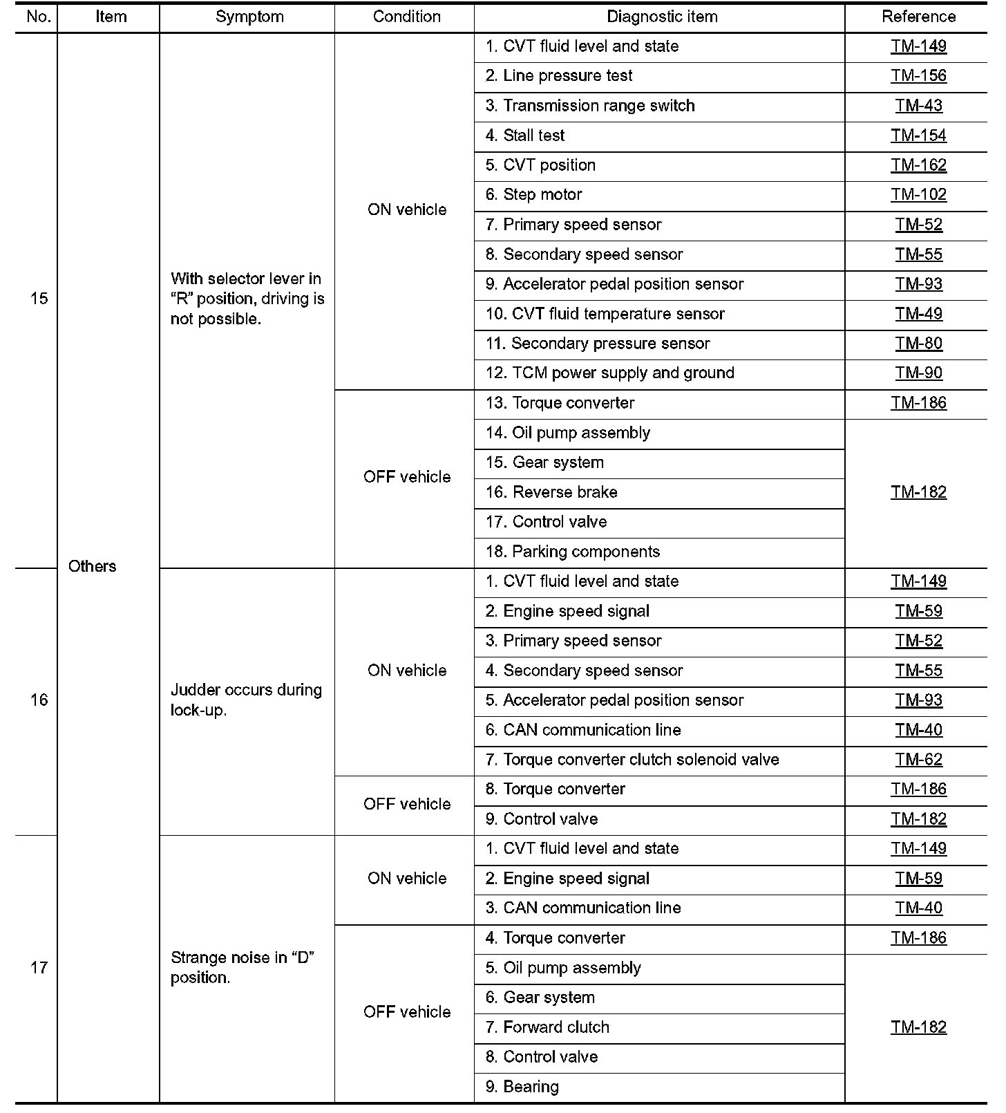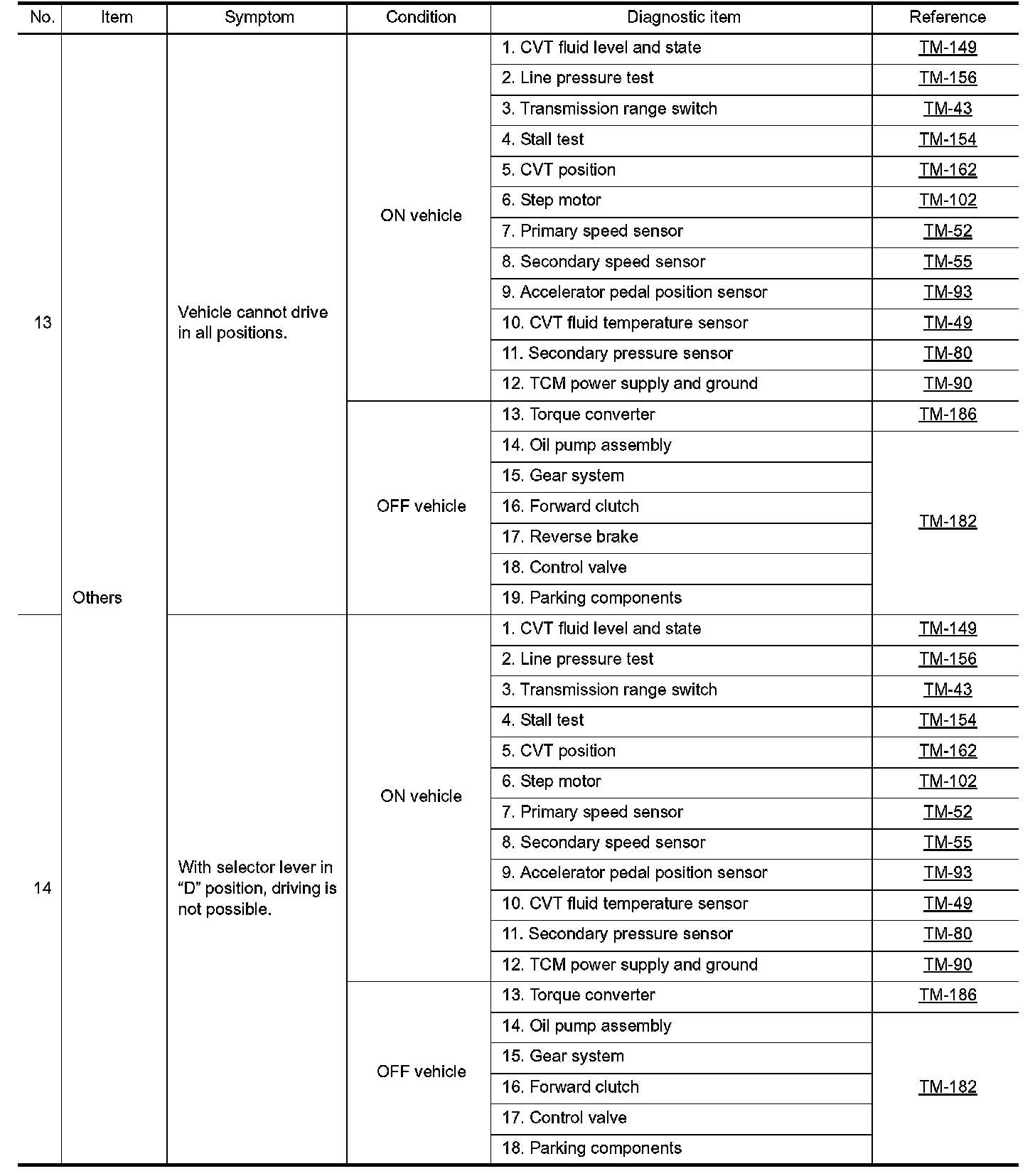 SYSTEM SYMPTOMSymptom Table The diagnostics item numbers show the sequence for inspection. Inspect in order from item 1.