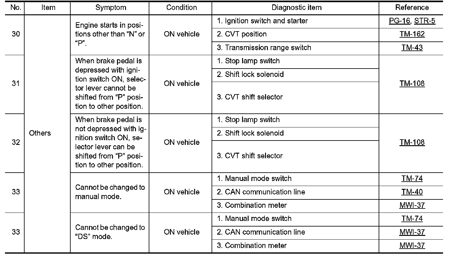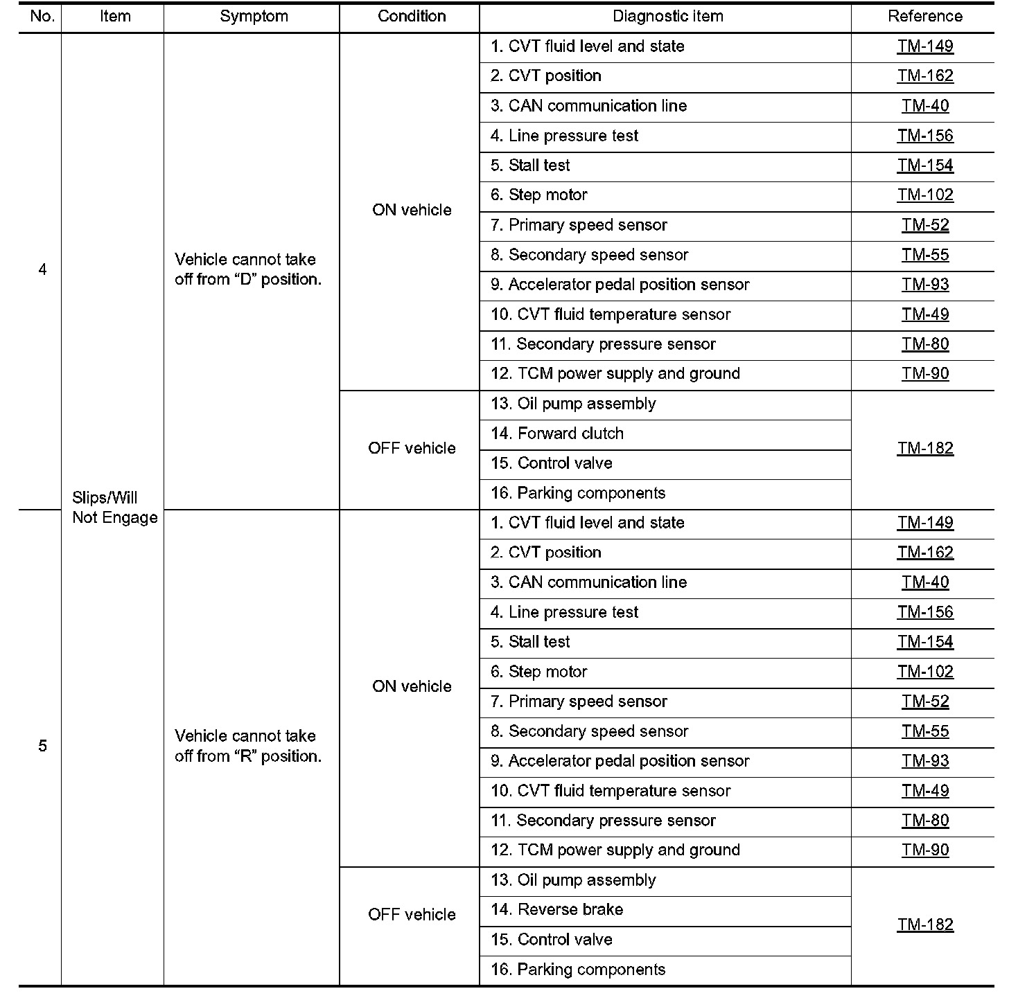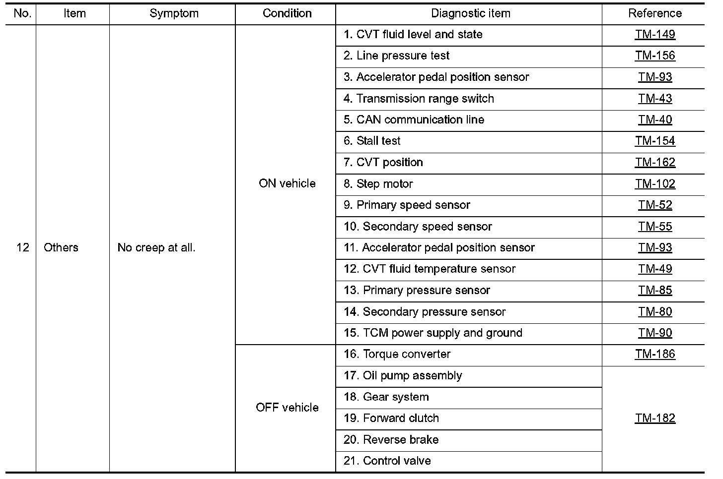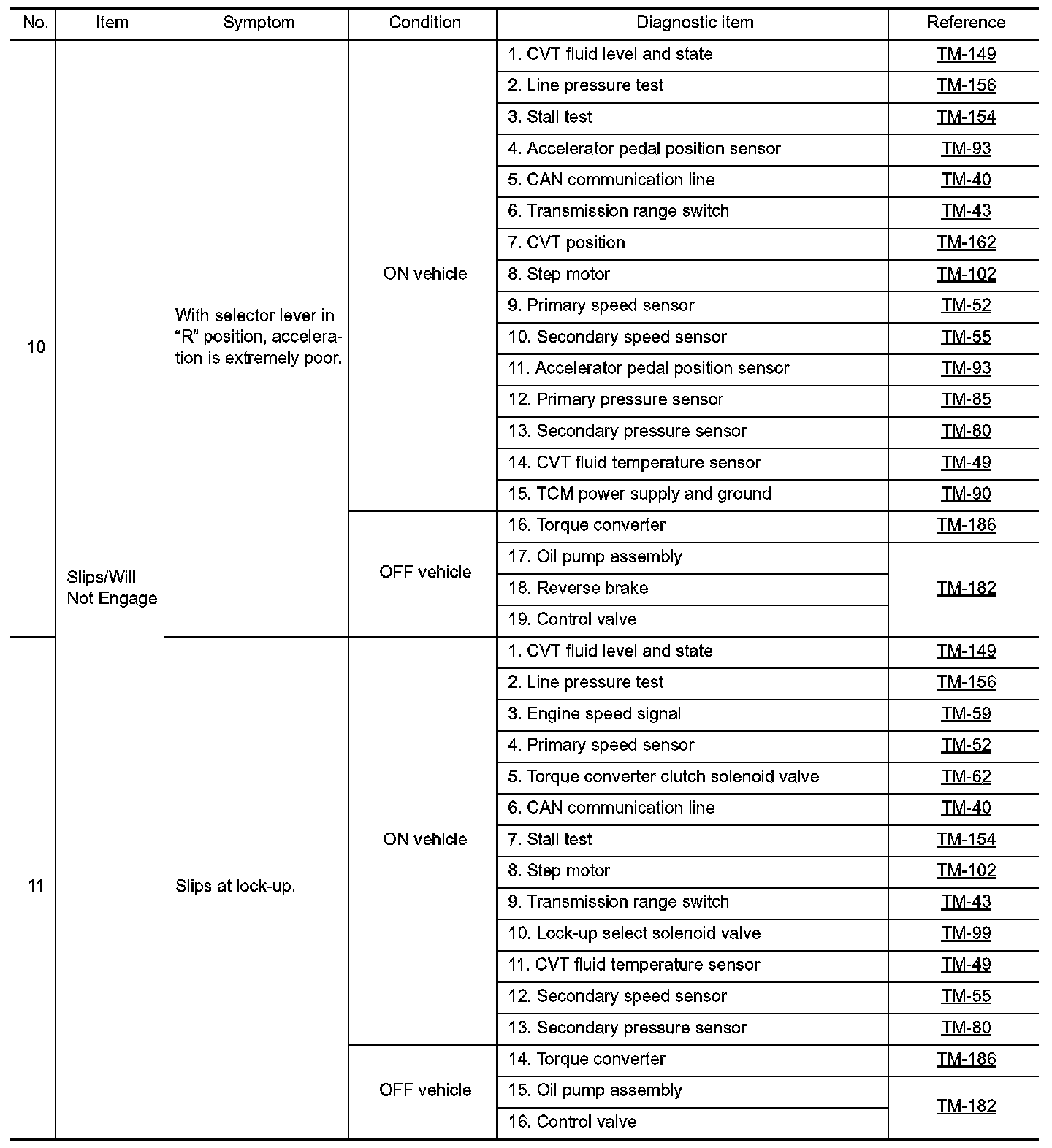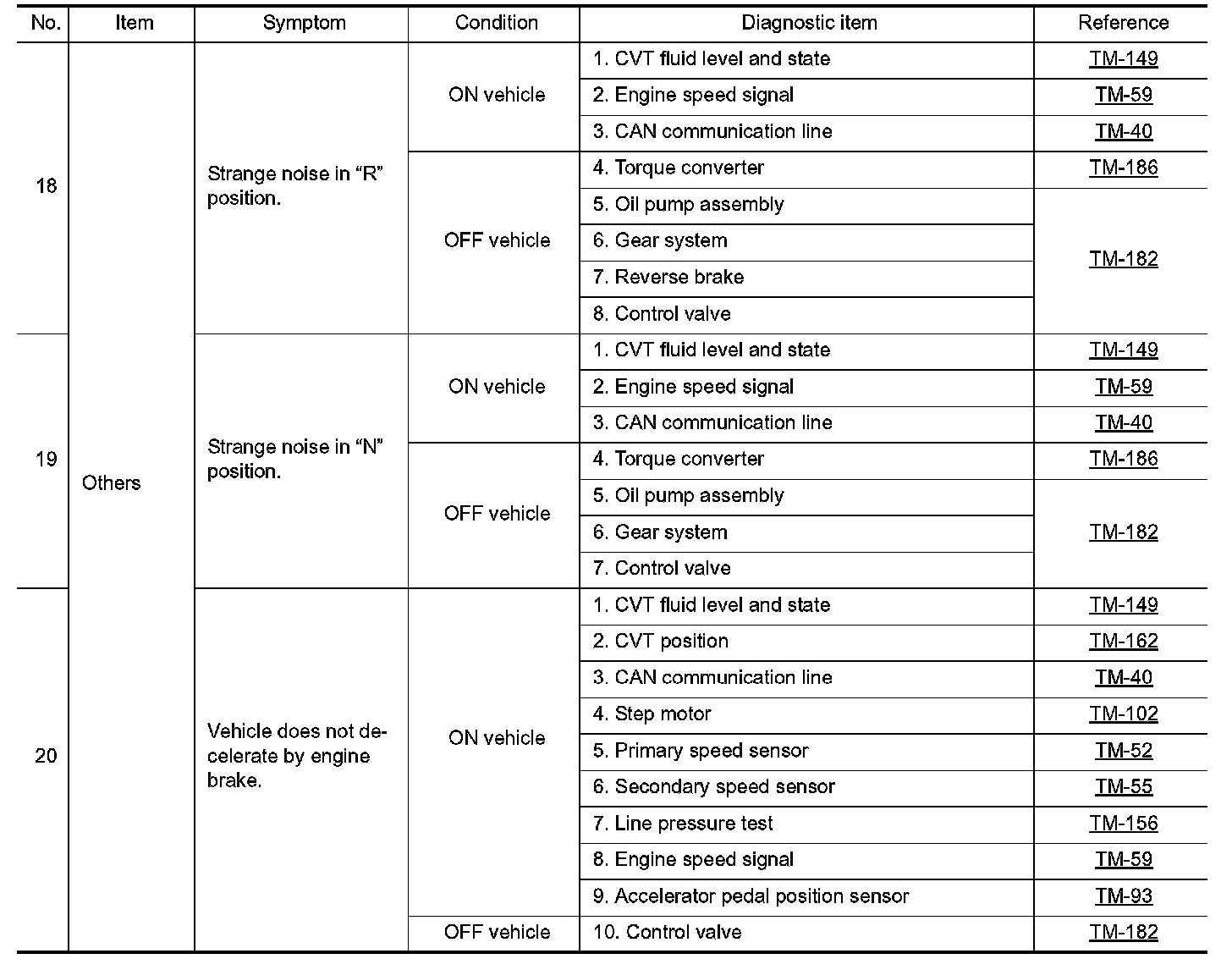 SYSTEM SYMPTOMSymptom Table The diagnostics item numbers show the sequence for inspection. Inspect in order from item 1.